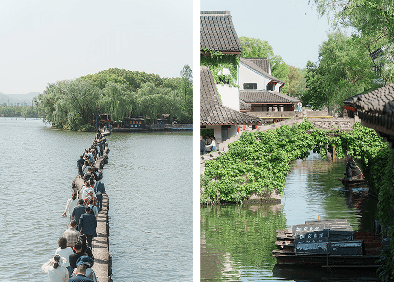晨光熹微中,載滿歡聲笑語的大巴抵達首站——紹興瓜渚湖公園,木繡球花、魯冰花、虞美人······花瓣隨風輕舞,湖面碧波與垂柳相映成趣,大家沿湖漫步,用鏡頭記錄春色,有人定格湖心亭與瀲滟波光的寫意構圖,有人抓拍同事與春花共舞的靈動瞬間,歡聲笑語間拉近了彼此距離。